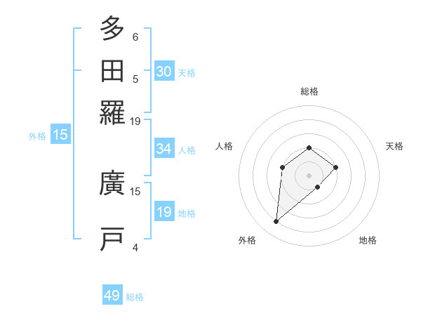 多田羅 廣戸さんの総格は49画の2点!