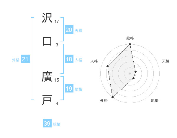 沢口 廣戸さんを姓名の画数から五運を鑑定