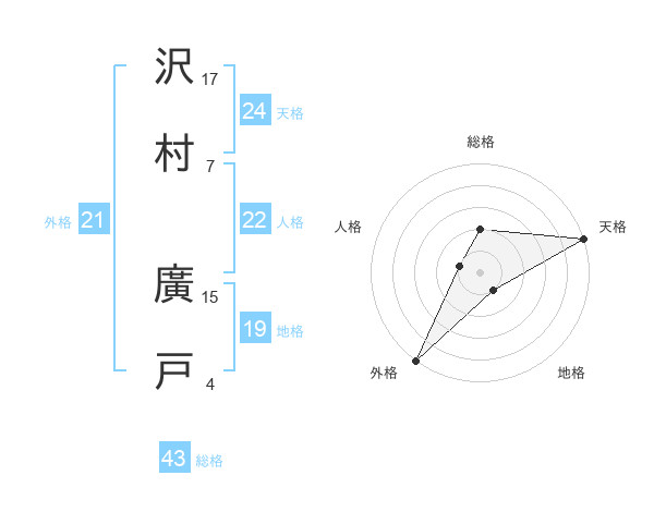 沢村 廣戸さんを姓名の画数から五運を鑑定