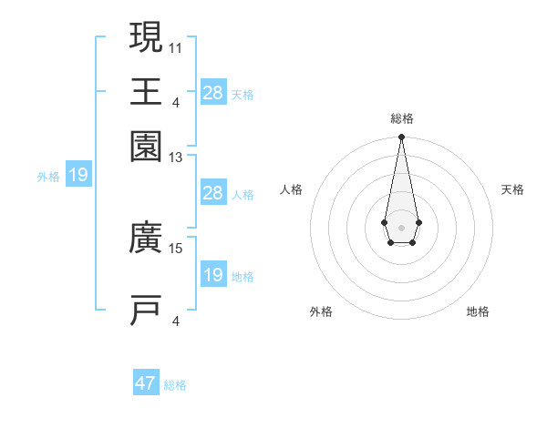 現王園 廣戸さんを姓名の画数から五運を鑑定