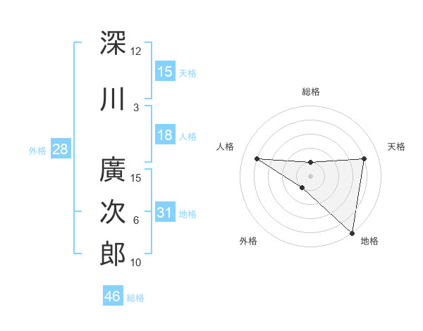 深川 廣次郎さんの天格は15画の4点!