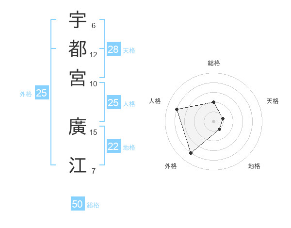 宇都宮 廣江さんの総格は50画の2点!