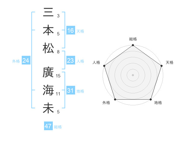 三本松 廣海未さんを姓名の画数から五運を鑑定