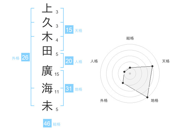 上久木田 廣海未さんを姓名の画数から五運を鑑定