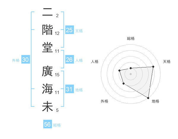 二階堂 廣海未さんを姓名の画数から五運を鑑定