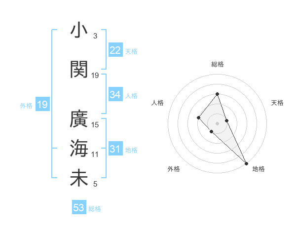 小関 廣海未さんを姓名の画数から五運を鑑定