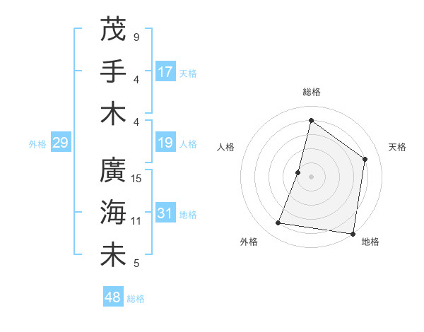 茂手木 廣海未さんの総格は48画の4点!
