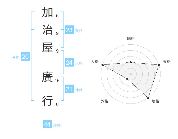 加治屋 廣行さんを姓名の画数から五運を鑑定