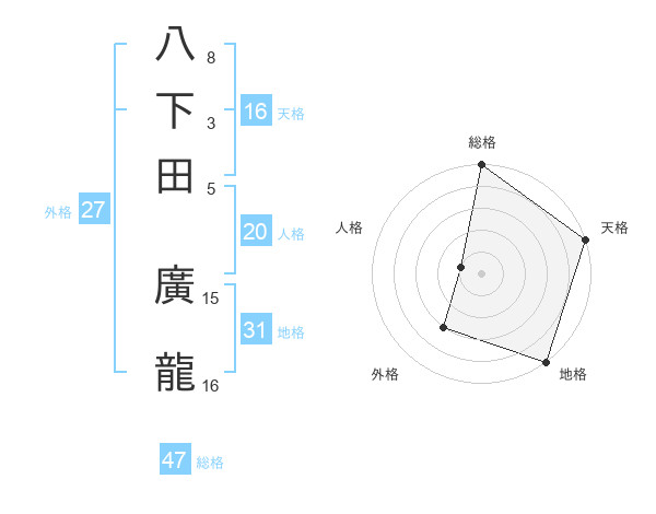 八下田 廣龍さんを姓名の画数から五運を鑑定
