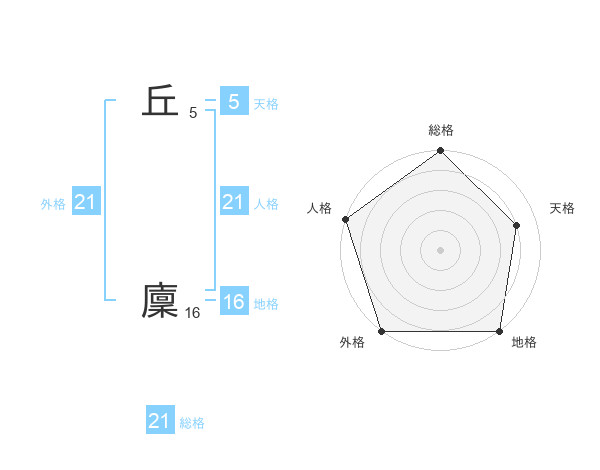 丘 廩さんの総格は21画の5点!