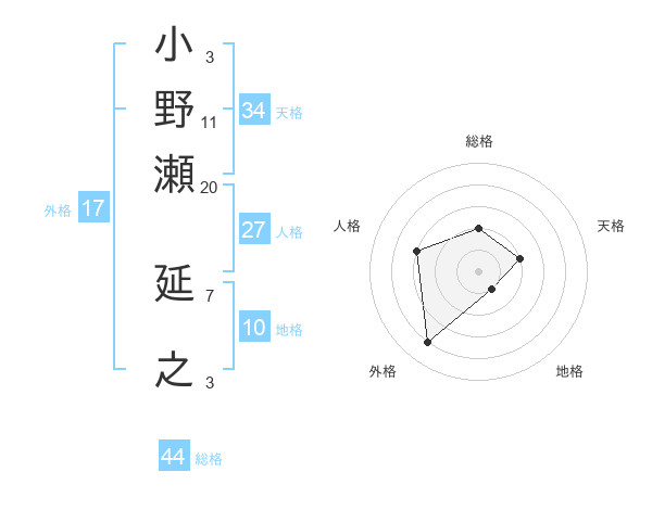 小野瀬 延之さんを姓名の画数から五運を鑑定