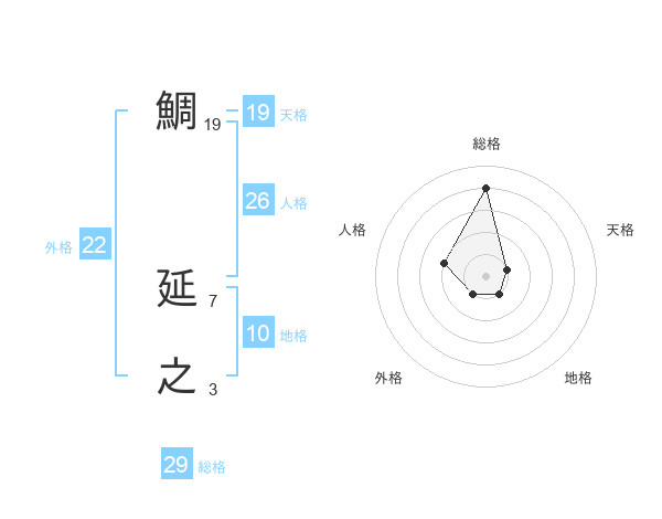 鯛 延之さんの総格は29画の4点!