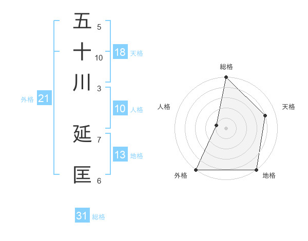 五十川 延匡さんの総格は31画の5点!
