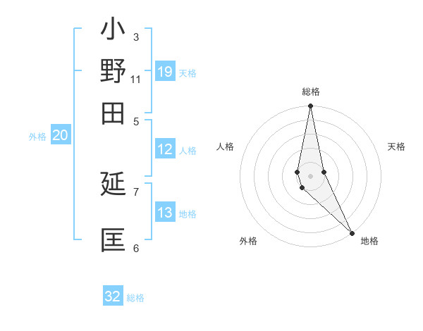 小野田 延匡さんを姓名の画数から五運を鑑定