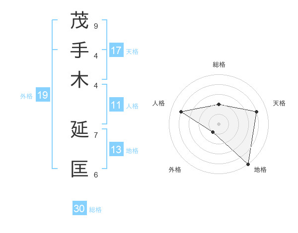 茂手木 延匡さんを姓名の画数から五運を鑑定