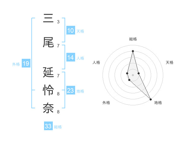 三尾 延怜奈さんの総格は33画の4点!
