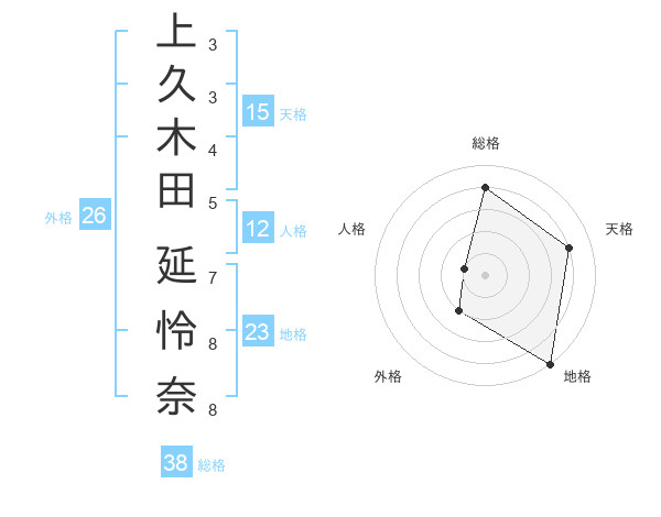 上久木田 延怜奈さんを姓名の画数から五運を鑑定