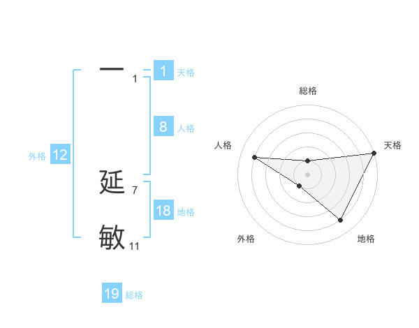 一 延敏さんの外格は12画の1点!