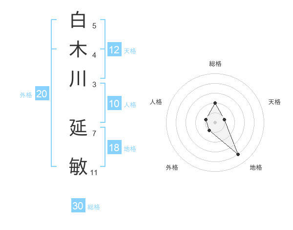 白木川 延敏さんの総格は30画の2点!