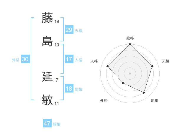 藤島 延敏さんを姓名の画数から五運を鑑定