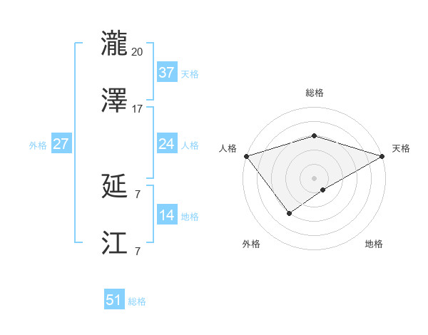 瀧澤 延江さんを姓名の画数から五運を鑑定