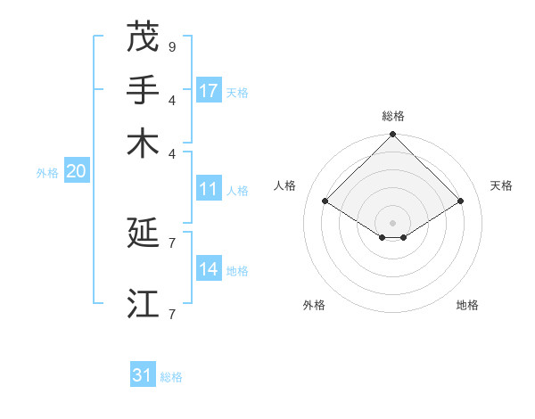 茂手木 延江さんを姓名の画数から五運を鑑定