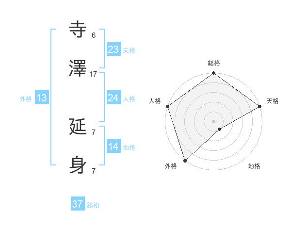 寺澤 延身さんの総格は37画の5点!