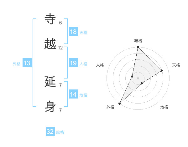 寺越 延身さんの総格は32画の5点!