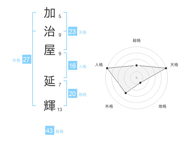 加治屋 延輝さんを姓名の画数から五運を鑑定