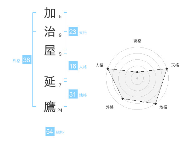 加治屋 延鷹さんを姓名の画数から五運を鑑定