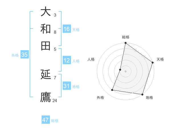 大和田 延鷹さんを姓名の画数から五運を鑑定