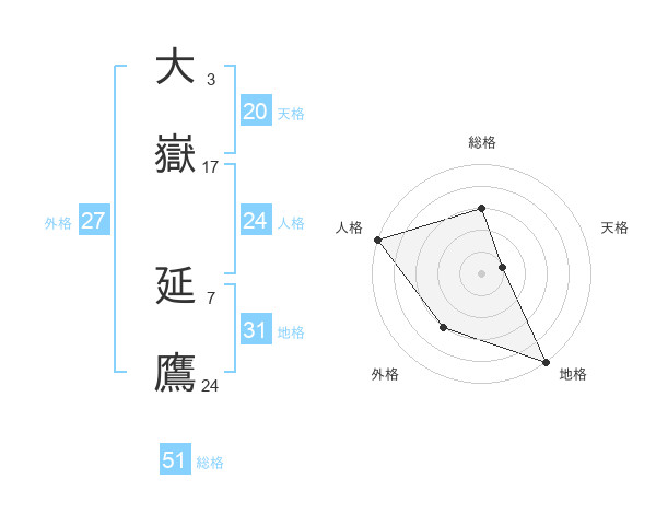 大嶽 延鷹さんを姓名の画数から五運を鑑定