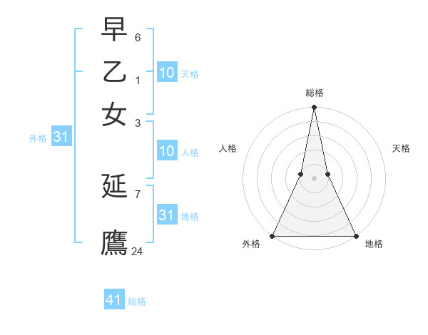 早乙女 延鷹さんを姓名の画数から五運を鑑定