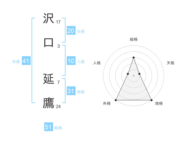 沢口 延鷹さんを姓名の画数から五運を鑑定