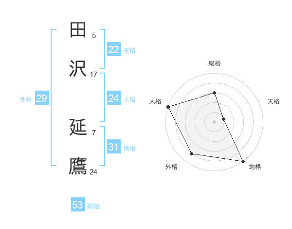 田沢 延鷹さんを姓名の画数から五運を鑑定