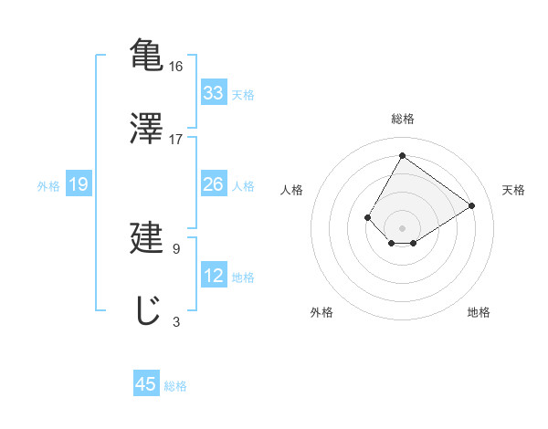 亀澤 建じさんの総格は45画の4点!