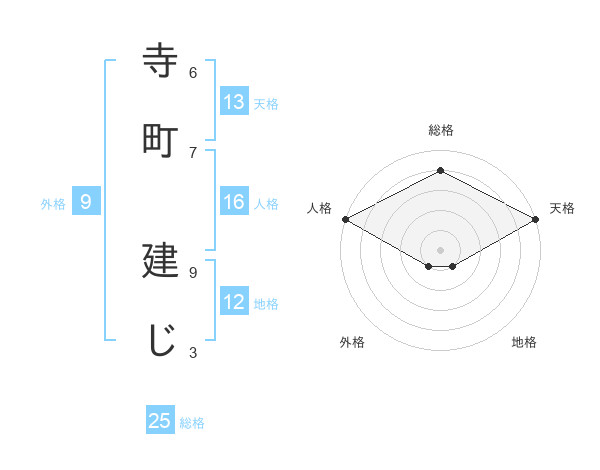 寺町 建じさんの総格は25画の4点!