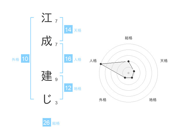 江成 建じさんの総格は26画の2点!