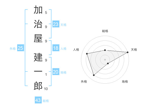 加治屋 建一郎さんの天格は23画の5点!