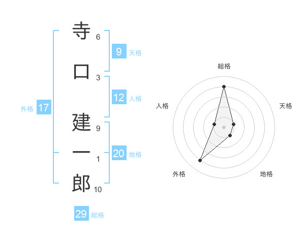 寺口 建一郎さんの総格は29画の4点!