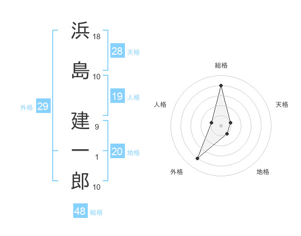 浜島 建一郎さんの総格は48画の4点!