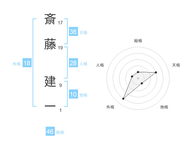 斎藤 建一さんを姓名の画数から五運を鑑定