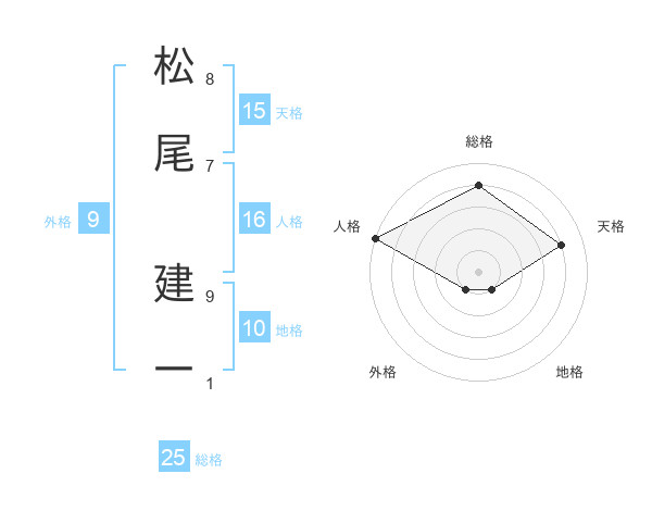 松尾 建一さんの総格は25画の4点!