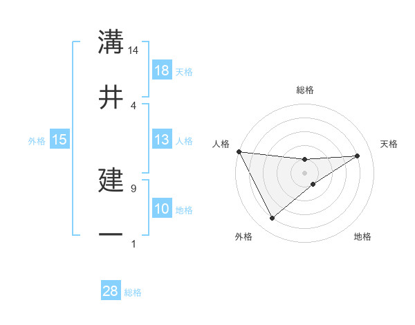 溝井 建一さんの天格は18画の4点!