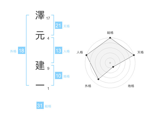 澤元 建一さんの天格は21画の5点!