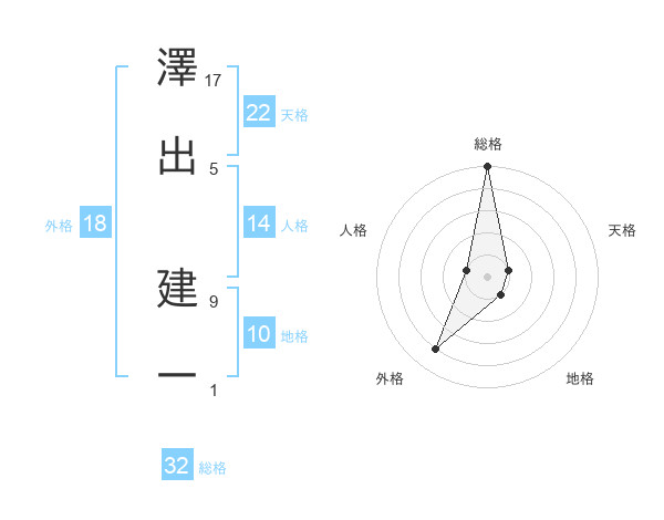 澤出 建一さんの総格は32画の5点!