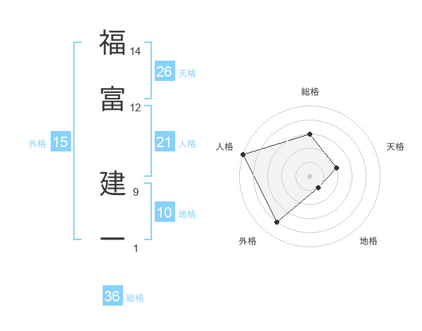 福富 建一さんを姓名の画数から五運を鑑定