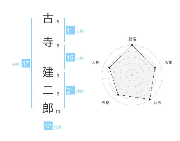 古寺 建二郎さんの総格は32画の5点!