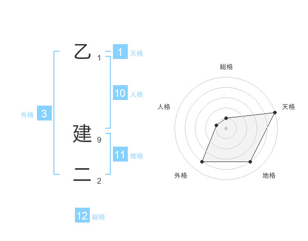 乙 建二さんの総格は12画の1点!