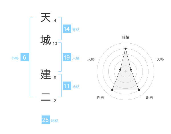 天城 建二さんの総格は25画の4点!